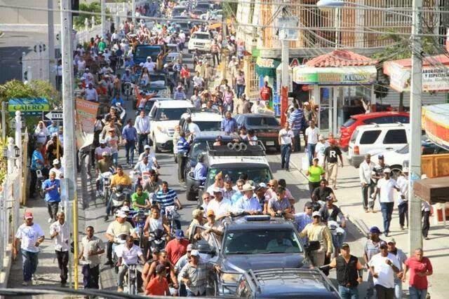 Azua de Compostela.− El Presidente Hipólito Mejía y el licenciado Abinader encabezaron este sábado, una concurrida marcha-caravana de la corriente mayoritaria del PRD, en este municipio, la cual recorrió los sectores El Tortuguillo, además las calles Tomás Oviedo, Rocco Capano, Héctor J. Díaz, 16 de agosto, Mercedes Mañón, entre otras.